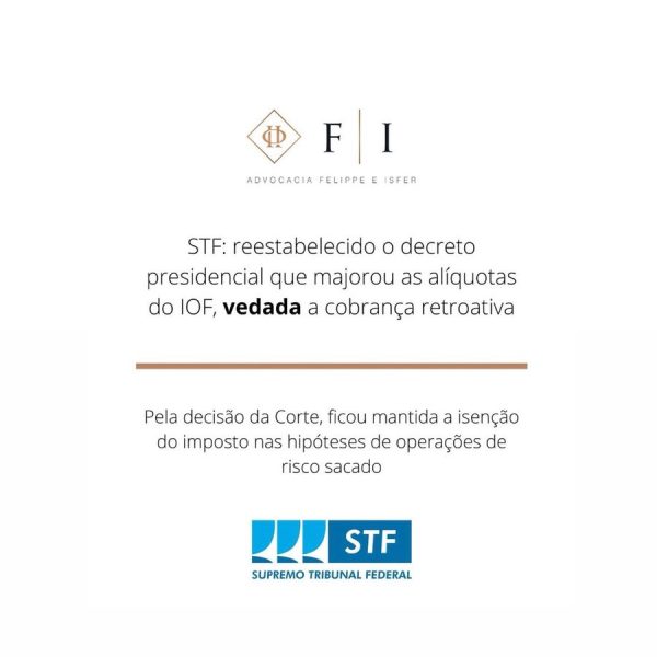 STF: reestabelecido o decreto presidencial que majorou as alíquotas do IOF, vedada a cobrança retroativa