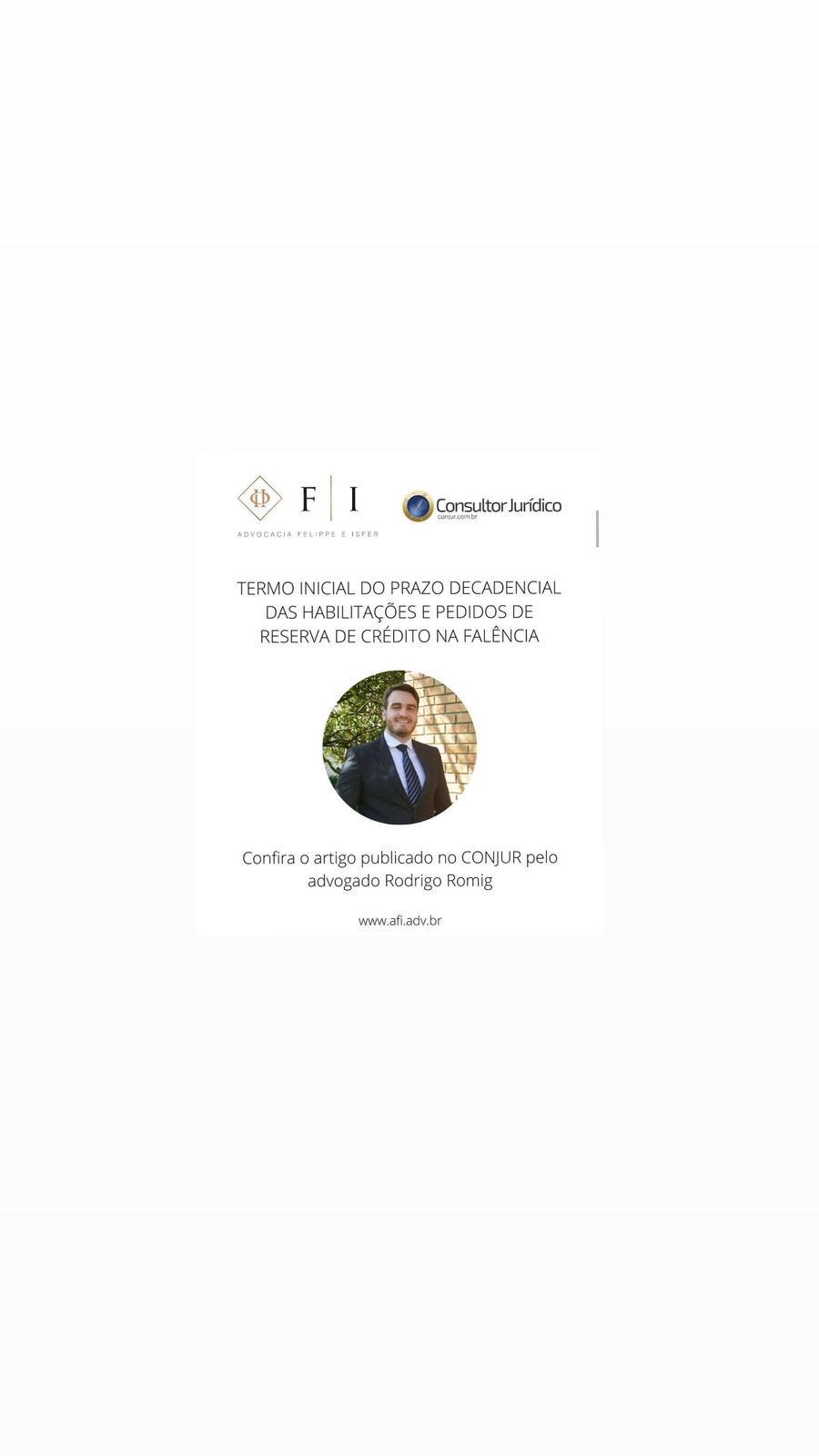 Na data de (15.12), foi publicado no CONJUR o artigo de autoria do advogado da AFI, Rodrigo Romig, intitulado “Termo inicial do prazo decadencial das habilitações e pedidos de reserva de crédito na falência”, o qual teceu uma análise crítica acerca da aplicação do prazo decadencial instituído pela Lei nº 14.112/20.